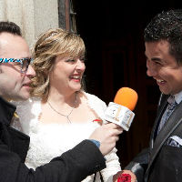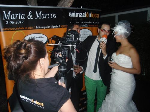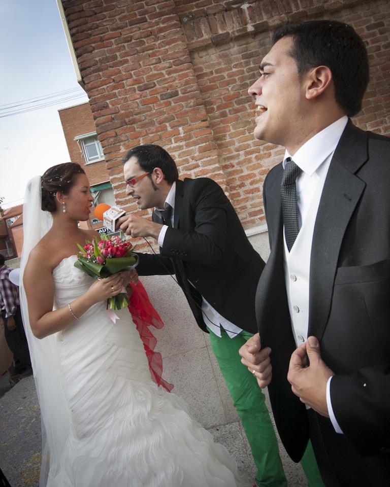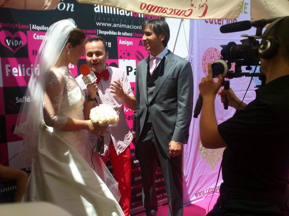 Imagínatelo, llegáis a la iglesia o lugar de la ceremonia y os encontráis un reportero al más puro estilo Caiga Quien Caiga que os estará esperando para entrevistaros, retransmitir todo lo que allí suceda, bromear con vuestra gente y propiciar situaciones divertidísimas y dignas para el recuerdo que protagonizarán las anécdotas posteriores a la boda durante años y años.