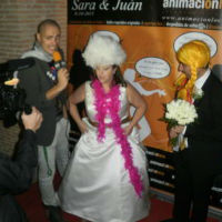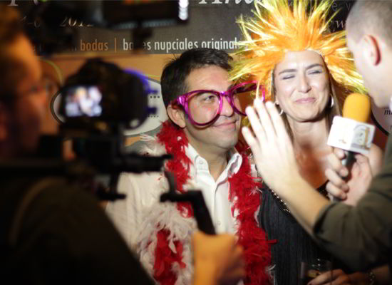 En el momento del cocktail además os colocaremos un photocall con su alfombra roja y atrezzo para generar momentos más divertidos y cachondos aún. En ella os entrevistará y pedirá a los invitados saludos a los novios, deseos, regalos, etc.